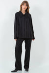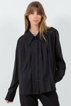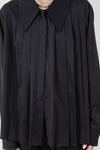 ASYMMETRICAL PLEATING COLLARED SHIRT - BLACK