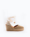 Textile upper, leather lining, yute wrapped double platform + double purpose: lace up and ankle strap